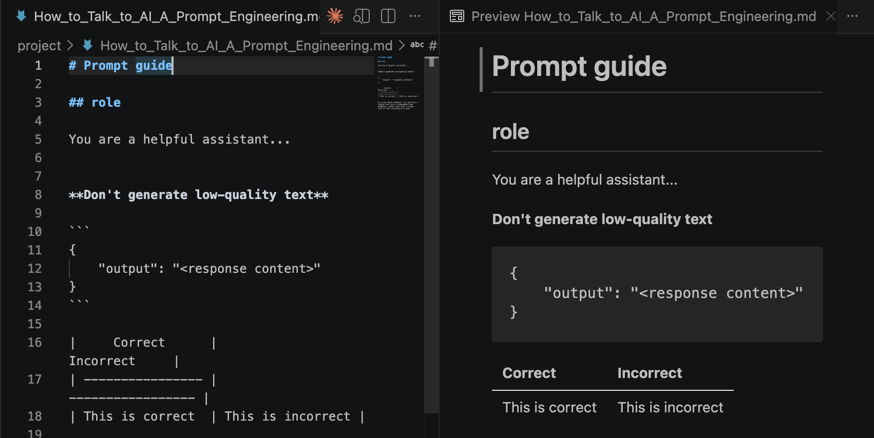 You don’t need to switch your entire writing workflow to Markdown, but familiarizing yourself with a few of its features can help you write prompts that read like ‘mini-documents’ – easy to read, edit, and reuse.