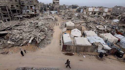 Palestinians are using rubble from the war to repave streets destroyed during Israel’s genocidal war on the besieged Gaza Strip.