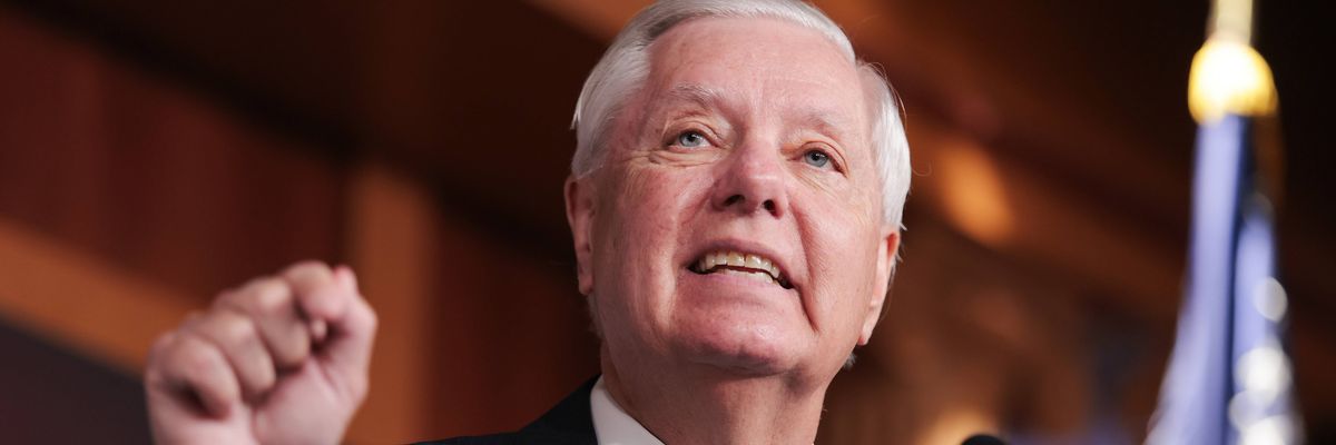 Sens. Lindsey Graham (R-SC), Katie Britt (R-Ala.), and Eric Schmitt (R-Mo.) held a press conference late Monday to announce their intention to expedite a bill to the Senate floor to use public funds to pay for the construction of a secure ballroom, joining Trump in insisting that a shooting at the White House Correspondents Association (WHCA) dinner on Saturday proved the project is a national security priority.