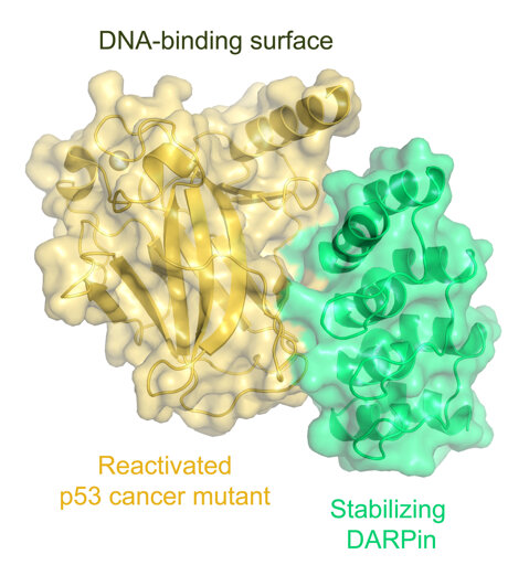Each year, 20 million people are diagnosed with cancer. Various organs can be affected, and cancer types sometimes differ greatly at the cellular and molecular level. In about half of all cases, however, the protein p53 is mutated. Known as the “guardian of the genome,” it plays a central tumor suppressor role: In healthy cells, it ensures that DNA damage is detected and repaired. If this is not successful, the affected cell is selectively eliminated through apoptosis—an important protection against cancer. Conversely, cells can often only develop into tumor cells when the protein p53 is inactivated by a mutation. In many cases, it becomes unstable as a result of the mutation and loses its functional structure.