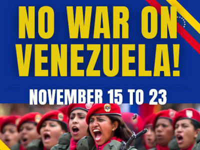This call to action is posted on the United National Antiwar Coalition web site. No War on Venezuela! No Troops on our Streets! Calling all anti-war, peace and justice, union and solidarity activists! An emergency network is calling for local actions, large and small, during the week of November 15-23, . . .