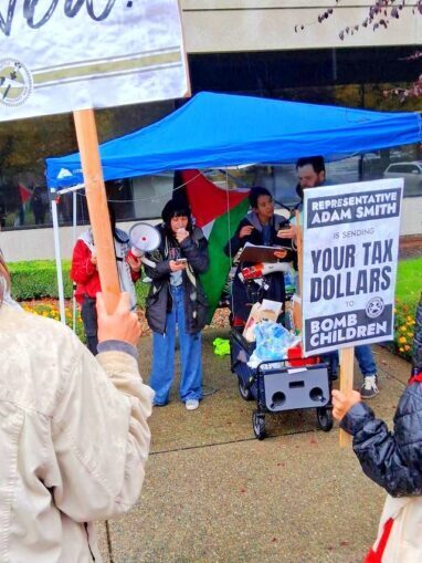 Seattle Pro-Palestine demonstration in Kent, Washington, Oct. 24, 2025. WW Photo: Jim McMahan Activists maintained protests against the U.S and Israel, calling for a legitimate ceasefire with full sovereignty for Palestine and in recognition of the blood Palestinians have shed for national liberation. Demonstrators from Seattle Against War and other . . .