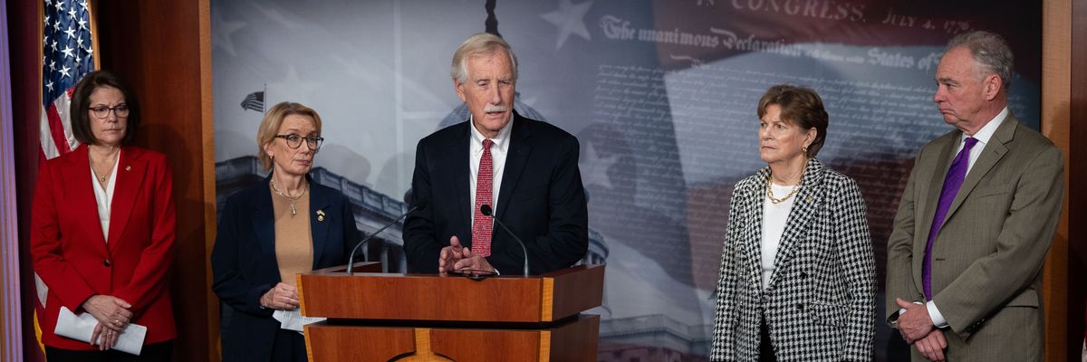 With the support of eight members of the Democratic caucus—Sens. Catherine Cortez Masto of Nevada, Dick Durbin of Illinois, John Fetterman of Pennsylvania, Maggie Hassan of New Hampshire, Tim Kaine of Virginia, Angus King of Maine, Jacky Rosen of Nevada, and Jeanne Shaheen of New Hampshire—Republicans in the upper chamber secured the necessary 60 votes needed to pass a cloture vote that paves the way for a deal critics warn does nothing to save Americans from soaring healthcare premiums unleashed due to the GOP spending bill passed earlier this year and signed into law by President Donald Trump.