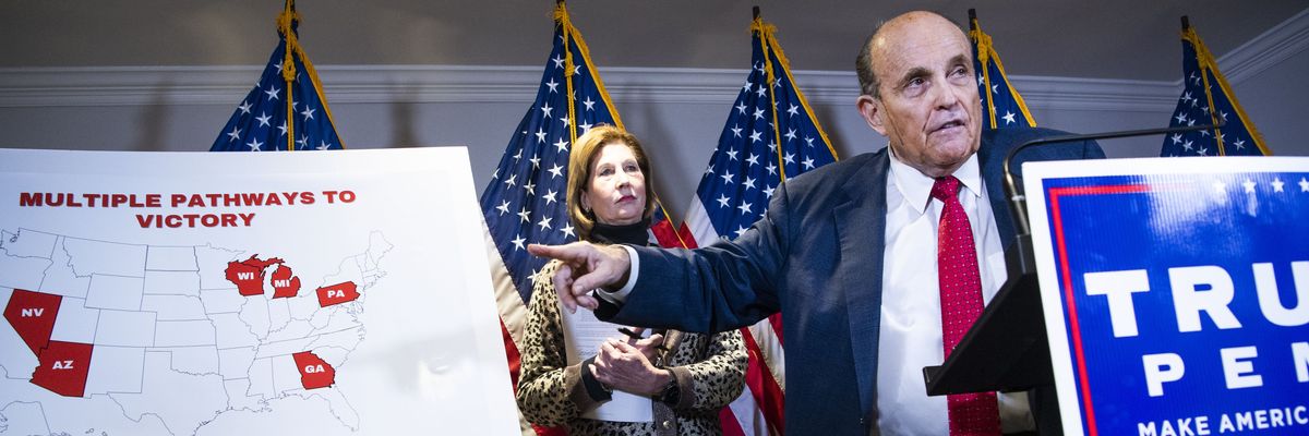 Among those pardoned are Trump lawyers Rudy Giuliani and Sidney Powell, who publicly promoted baseless claims of a vast conspiracy against the president to the public, claiming that the election was stolen by a cabal of foreign infiltrators and scheming election officials. They later faced defamation lawsuits for these claims, and in legal proceedings, Giuliani conceded he made false statements about election workers, while Powell’s lawyers argued that “no reasonable person” would conclude her public claims were statements of fact.