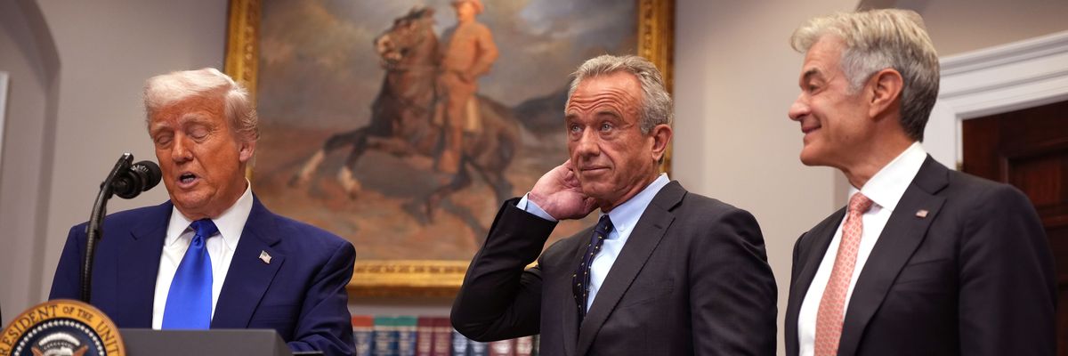 President Donald Trump on Tuesday proclaimed he would not sign any fix to the nation’s healthcare crisis that would send money to what he termed, in all capital letters, as the “BIG, FAT, RICH INSURANCE COMPANIES, WHO HAVE MADE $TRILLIONS, AND RIPPED OFF AMERICA LONG ENOUGH”—and progressives did not hesitate to point out that by taking for-profit, private insurers out of the healthcare equation, one would quickly—if they cared about covering more people with less money—be left with something more akin to the kind of universal, publicly-supported healthcare systems that most nations in the developed world already enjoy.