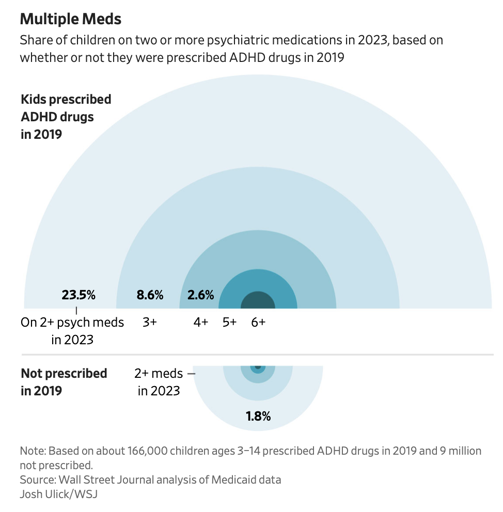 The Wall Street Journal tells a sobering and well documented story of how ADHD Rxs in the young often lead to even more drug administration.