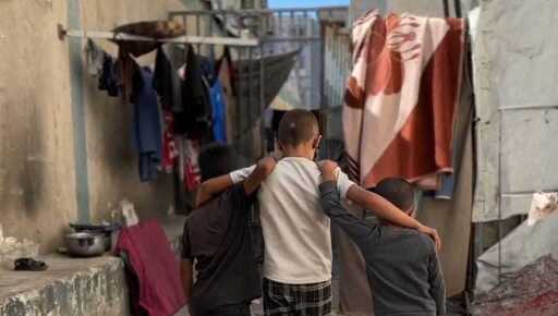 “This pipe doesn’t make up for my leg,” said 10-year-old Rateb Abu Qleiq.
